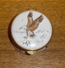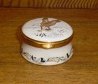 Here is a small trinket box. It measures 2 1/2" in diameter. Some staining on the bottom. No box. Buyer agrees to pay the calculated amount of shipping. Ebay will collect sales tax if applicable. John 3:16 <><