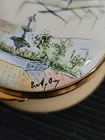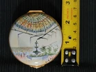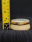 Staffordshire Enamels Trinket Box "The Stanford Court" By Betty Guy Nob Hill SFO. Trinket box in excellent pre-owned condition. Box has some wear and water staining(last pic). Features The Stanford Court watercolor art by Betty Guy. Measures 2.75" diameter, 1.25" height. Made in England.