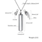 Stainless Steel Cremation Jewelry Cylinder Pet Memorial Urn Necklace Wing and high Features: high stainless steel, highly-polished surface, hypoallergenic, sturdy and durable. Never rust, corrode, fade or stain. Last forever just like the memory it represents. Use as Pendant Necklace or Keychain.High polished Surface, Smooth and Comfortable to Wear. A lovely necklace to remember a special and keep them close to your heart at all times. This could be used for Cremation Jewelry,Urn Jewelry, Cremation Urn, Necklaces for Ashes, Urns for Ashes. Specification: Stainless Steel Color: Metal 1 2#; 3#; 4# Size: Cylinder: 4.7x1.1cm(1.85inx0.4in); wing: 3cm(1.18in); adjustable chain length: 50cm(19.69in) Quantity: 1 Set Note:1.Please allow 1-3cm error due to manual measurement. pls make sure you do not mind before you bid. 2.Due to the difference between different monitors, the picture may not reflect the actual color of the item. Thank you! Package includes(without retail package): 1 Set x Pet Cremation Jewelry