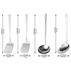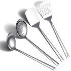 Complete Set: This cooking utensils set includes 4 essential pieces, namely one slotted turner, one solid turner, one skimmer, and one ladle. With this comprehensive set, you can handle various cooking tasks with ease, whether it's flipping pancakes with the turners, skimming impurities from soups with the skimmer, or serving delicious stews with the ladle. Classic Design: The utensils feature a classic design that not only looks elegant but also offers great functionality. The design is carefully crafted to fit comfortably in your hand and make your cooking experience more enjoyable. Dishwasher - Safe: Save time on cleaning up after cooking! These stainless - steel utensils are dishwasher - safe. You can simply place them in the dishwasher, and they will come out clean and shiny, without any damage to the utensils. Durable and Rust - Resistant: Made of high - quality stainless steel, these utensils are one - piece formed, which makes them extremely sturdy and durable. They are built to last and will not rust over time, even with regular use in a wet kitchen environment. Versatile Use: This set is perfect for both home use, making it a must - have for new houses and new apartments, as well as for professional use in restaurants. Whether you are cooking for your family or for a large number of customers, these utensils will meet your needs.