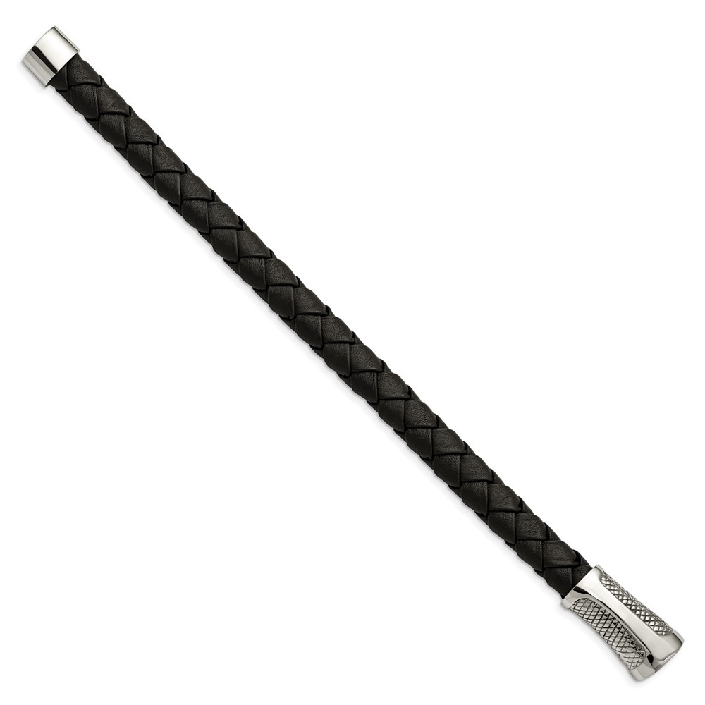 Finish:Polished|Length of Item:8.5 in|Material: Accents:Leather|Material: Accent Color 1:Black|Chain Length:8.5 in|Chain Type:Leather|Clasp /Connector:Magnetic Clasp|Material: Primary:Stainless Steel|Width of Item:12 mm|Packaging:Gift Pouch|Product Type:Jewelry|Jewelry Type:Bracelets|Sold By Unit:Each|Bracelet Type:Men's|Gender:Men's|Texture:Textured|Material: Primary - Color:White|Items per Pack:1 All weights and measurements are approximate and may vary slightly from the listed information. Welcome to diamond_6720 Payments We accept all Ebay approved payment. Please sent the payment to us within 8 days after the auction has ended, or you will have unpaid case auto open by eBay. Shipping Policy We will ship all items within 1 business days of purchase during the work week (M-F) excluding holidays. If you order on Friday, your order will be shipped the following business day. Tracking will be provided when it becomes available. We will only ship to a PayPal Verified Address. Please make sure your address is current and correct. If the information does not match, your order may be canceled. Buyers are responsible for all customs, duties and taxes for your respective countries. Delivery times for International Shipping will vary. California Buyers Pay 9.0% Tax on all orders. case auto open by eBay. Return Policy & Exchange Returns or Exchange are accepted. Buyer must contact us within 30 days after the item is received. Item must be returned in unworn and resalable condition. We will only issue a refund for the purchase price, excluding any shipping fees. If we are at fault, we will provide a full refund. Buyer is responsible for all return shipping costs. BUYERS FEEDBACK If you have any concerns regarding your purchase, please contact us via eBay Message, we assure you that a satisfactory resolution will be reached. Your feedback is very important to us Do remember to give us 5 star rating(*****) if you are satisfied with our product & service .