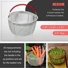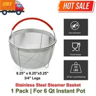 Stainless Steel Steamer Basket For 6Qt Instant Pot, Pressure Cooker, Silicone Handle BUILT-IN HANDLES FOR YOU CONVEINENCE- No more having to reach deep into your insta pot to retrieve your favorite accessory. Our patent-pending egg bite mold has permanently attached handles, that clip together, making removing this instant pot tray easily removable. INSTANT-POT COMPATIBLE - PATENT PENDING - designed to fit IP-DUO60 6 Qt 7-in-1 Multi-Use Programmable Pressure Cooker, LUX60 V3 6 Qt 6-in-1, Instant Pot Ultra 6 Qt 10-in-1 Multi-Use Programmable Pressure Cooker, but will fit many other pots and pressure cookers, including the Power Pressure Cooker XL models. Also fits the Aroma 20 cup Rice Cooker And Ninja Foodi Accessories. STAINLESS STEEL CONSTRUCTION AND SOLID REINFORCEMENT ON FOUR SIDES AND TOP RIM - - long lasting stainless steel 304 material is dishwasher safe, solid construction adds strength and stability to the strainer basket and handle has been tested to lift up to 20 pounds, much more than needed. CONVENIENT SINGLE-HANDLE DESIGN - Sometimes you only have one free hand, while cooking your eggs, meats or vegetables, our basket will allow you to lift the basket from the inner pot with one hand. Also features premium, red silicon-wrapped handle - for you comfort and convenience and fits neatly inside of basket, out the way for food. BUILT TO LAST - this product will not to rust or fall apart.
