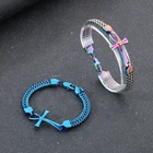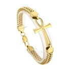Stainless steel double row woven cross bracelet spliced titanium steel jewelry