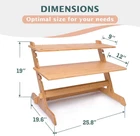 The Standing Desk Converter is made of natural bamboo and features a contemporary/modern style with a nature theme. It is eco-friendly and designed for dual monitors. The desk has a height of 19 inches and a width of 26 inches. The handle material is wood. It can be adjusted to a sitting or standing position for a comfortable work setup. FAST SHIPPING Y22305