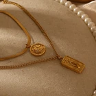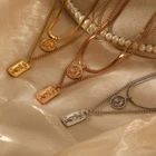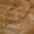 Star moon titanium steel double layer wear square brand collarbone necklace