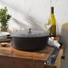 Staub Cast Iron 6.25-qt Shallow Oval Dutch Oven - Black Material Cast Iron Brand STAUB Color Black Shape Oval Product Care Instructions Hand Wash Only, Dishwasher Safe Made in France Heavy weight, tight-fitting lid retains moisture, spikes on the lid create a rain-forest effect evenly returning juices back onto food Oven safe up to 900F/482C without lid, Lids are oven safe up to 500F/260C Brass knob Smooth enamel bottom works on all stovetops, including gas, electric, glass, ceramic, induction, and halogen Shipping We offer FREE shipping on all orders! We ship within Three business days of payment, usually sooner. We use a selection of shipping services such as UPS, FedEx, USPS etc. We only ship to the lower 48 states, no APO/FPO addresses or PO Boxes allowed. Local pickups and combined shipping options are not provided at this time. Return You can return a product for up to 30 days from the date you purchased it. Any product you return must be in the same condition you received it and in the original packaging. Please keep the receipt. Payment We accept payment by any of the following methods: PayPal Please pay as soon as possible after winning an auction, as that will allow us to post your item to you sooner! Feedback Customer satisfaction is very important to us. If you have any problem with your order, please contact us and we will do our best to make you satisfied. Contact Us If you have any queries, please contact us via ebay. We usually respond within 24 hours on weekdays. Please visit our eBay store to check out other items for sale! Thank you for shopping at our store.