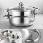 Package Includes - Steamer pot designed for 3-6 people, including a large bottom pot (27.7cm x 8.7cm-10.9'' x 3.4''), 1 steamer (27.7cm x 6.9cm-10.9'' x 2.7''). Healthy & High Quality - Steam pot is made of 18/8 stainless steel, which is 304 food . Our induction steamer pot is safe and good for use. Multi-function Steamer Pot for Cooking - Single and double layers can be freely combined to steam and cook at the same time to meet different needs. Suitable for steaming tamales, veggie, broccoli, couscous, pasta and dumplings, crab legs, shrimp, lobster, oyster, clam and other seafood. Visualized Lid & Handle Design - Unique design of handles on both sides allows you to use more comfortable and prevent burns. The transparent glass lid will let you know the process of cooking schedule, lock the flavor, heat and moisture of the food. Suitable for All Kinds of Cookware & Dishwasher-safe - Suitable for Induction, gas furnace,halogen oven,furnaces.