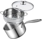 Store New Arrivals Add to Favorite View Feedback Contact Steamer for Cooking, 2.5 Quart Saucepan with Steamer Basket, 18/8 Tri-Ply Construction Stainless Steel Steamer Pot, Sauce Pan with Lid 2-Tier for Cooking Vegetables, Seafood, Soups, Stews and Pasta Description Item model number steamer pot 2tier 7 Capacity 2.5 Quarts Color Silver Material Stainless Steel Country of Origin China Item Weight 3.67 pounds Is Oven Safe Yes Finish Type mirror polishing Product Dimensions 3.42"D x 17.67"W x 3.54"H Coating Description Ceramic Size 2.5 QT - Tri-ply IMPROVED STEAMER POT - Made of high quality 3-ply stainless steel, 18/8 Food-Grade stainless stee linner layer, the middle sandwich aluminum layer with stainless steel outer layer. Unlike other products, our Steamer pot is treated with special polishing technology, which is easy to clean and eliminate iron chip adhesion, ensuring your health. The bottom of the pot is made of three-layer energy-gathering composite material that ensures the heat it thoroughly and evenly distributed. PACKAGE OF STEAM POTS - For 2-4 person meals, consists of a large bottom pot(19cm x 9cm-7.6" x 3.5"), 1 steamer pot(19cm x 5.5cm-5.5" x 2.1"). Contains ONLY 3 PIECES: one steamer pot, one steamer basket and one lid set. MULTIPURPOSE STEAMER FOR COOKING - Our steamer pot can be used as a stockpot or as steamers, along with different combinations, you can use it as a 2-layer steam pot at most to meet your different cooking needs. As a food steamer with a vented lid, you can see the food without opening the lid. MULTITASKING DESIGN – Arched lid design, allowing you to have more cooking space when using steamer for cooking. Unique design of handles on both sides allows you to use more comfortable and prevent burns. Care instructions: do not use the pot for a long time empty dry burner after use wash and wipe dry, placed in a dry place to avoid food grease residue damage to the surface of the pot, resulting in rust. FUNCTION - Our large 2 tier vegetable steamer pot can be used as a multifunction stockpot. Works gas, electric stove, glass, ceramic, stovetops and halogen. Dishwasher-safe/Hand wash recommended. Product Description Steaming is a healthy way to prepare food. It can quickly cook food and retain the nutrition of the food without loss. It is ideal for making delicious dishes. Dishwasher safe Compatible with various cooktops For 2-4 person meals With special polishing technology 18/8 Stainless Steel 2 Tier - Steamer Pot With Lid Visible glass Lid Our Steamer Pot With vented glass lid, so food can be checked without losing heat.you can see the food without opening the lid. 2 Tiers design 2-tier design, consisting of one port and 2 steam compartments, use as a single- or two-tier steamer or use the bottom pot alone as a casserole. Free cooking pairings. Multipurpose Stainless steel riveted handles provide extra support and balance when lifting and dumping. Great for dumplings, vegetables or fish/poultry. You can enjoy no bake style food. Volume scale design Easily customise your recipes and control the capacity adjustment to make better food. ABOUT US We offer the best prices around on high quality products. Our E-store includes media such as books, movies, music and games while offering electronics, toys, sporting apparel, clothing, tools, general home, garden items and more. SHIPPING We are always working hard to ensure your package arrives as soon as possible. Please understand that some factors like weather, high postal traffic, and the performance of shipping companies are outside of our control. We offer free shipping to the lower 48 states and ship within 2 business days of payment, usually sooner. We do not accept P.O. Boxes. Please provide a physical address. For shipping outside of the continental USA, we only use eBay's Global Shipping Program.The item is shipped to KY and then sent to the rest of the world. International customers are responsible for all duties and taxes. Continue to check out in order to calculate costs for shipping the item to your country. Messages regarding eBay's Global Shipping Program MUST be directed at eBay EXCLUSIVELY. RETURNS We offer a 30-Day Return Policy on items which you are not completely satisfied with. You have the option for a full-refund or an exchange of the item. No returns are available on items shipped outside of the USA. PAYMENT We accept PayPal. CONTACT US This page content is yet to come Please ad us to your favorite seller and visit again later Thank You CUSTOMER SATISFACTION We try our very best to make sure every customer is completely satisfied. If there's a problem, message us! We're happy to help. WE ACCEPT Copyright © 2021 AutoDS. | All Rights Reserved