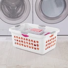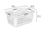 Sterilite 2 Bushel Ultra™ Laundry Basket Plastic Adult, White, Set of 4 Outside Dimensions: 26 3/4" x 18 7/8" x 12 1/4" Set of 4.White.2 Bushel capacity. Designed to carry large loads of laundry Four comfort grip handles for easy carrying Ventilation holes enhance air flow.Ideal for use in the Laundry Room, Dorm Room or Bedroom Laundry Basket assembled weight: 2.9 lbs.
