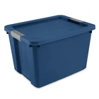 Step up to Sterilite's versatile 20 Gallon Storage Bin with latching lid, ideal for a variety of household storage challenges! The deep recessed lid surface allows totes to stack securely for efficient use of vertical storage space. Large latches keep the lid attached to the base, so contents stay safely stored inside, and provide a comfort grip when carrying. The sturdy design makes it a great option for garages, basements and attics, where you might need a bit more durability. This size plastic storage container is perfect for storing and concealing blankets, seasonal items, sporting gear, and more! Sterilite 20 Gallon Latch Tote, Stackable Plastic Storage Bin with Latching Lid, Blue Outside Dimensions: 23 5/8" x 18 1/4" x 15 1/2" Interior Dimensions at bottom: 18 1/8" x 14 7/8" x 14 3/8" Large latches secure lid to base, keeping contents safely stored inside Deep recessed lid allows for secure stacking, maximizing vertical storage space Comfortable integrated handles for easier lifting and transporting Use good judgment when stacking items, keep heaviest bin at the bottom BPA-free and phthalate-free