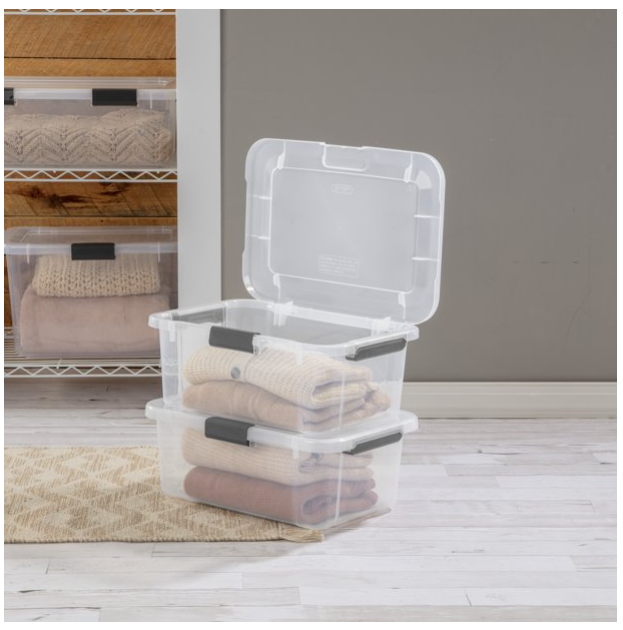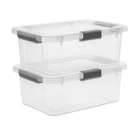 Product details Great organization “hinges” on the ideal solution for your storage challenge… And here is a brand new Clear Storage option! The HingeLID Storage Box line combines popular features such as a hinged lid for easy access, clear lid and base for quick identification of contents, and a stylish textured pattern for a décor touch! The innovative hinged lid stays open unassisted, allowing you to use both hands, for careful handling of stored items. The lid stays attached, so no worry of it getting misplaced! For easy clean up, snap the color-accented latch to secure the lid to the base and transport the Storage Box with ease using the textured, comfort-grip handles. The 20 Quart HingeLID Storage Box is ideal for sorting and storing anything from clothing and accessories to craft supplies, health and beauty items, toys, and more. Once your items are stored, the clear lid and base allows for easy viewing and retrieval of your belongings. The 20 and 30 Qt HingeLID Storage Boxes use the same lid, allowing both shallow and deep sizes to be stacked on the same footprint. The indexed lids allow for secure stacking and efficient use of that vertical storage space. The HingeLID Storage Box line is available in five sizes, ranging from 20 Qt to 80 Qt, and designed with a modern profile and textured pattern. Pick up the sizes that are best for you and dress up your storage today! The overall assembled dimensions of this item are 18 5/8" L x 14" W x 7 3/8" H. Sterilite Adult Plastic 20 Qt HingeLID Storage Box Plastic, Flat Gray, Set of 6: Outside Dimensions: 18 5/8" x 14" x 7 3/8" Set of 6 Flat Gray Interior Dimensions at bottom: 15 1/2" x 10 1/4" x 7" Versatile, all-purpose solution, ideal for a variety of household storage needs Hinged lid allows for easy access to contents and ensures that the cover is never misplaced Clear lid and base allow for contents to be viewed at a glance and easy to find Sturdy, color-accented latch secures lid to base, keeping contents safely stored inside Modern, decorative and textured pattern featured throughout the item – on the lid, latch and handles Comfortable handles make lifting and transporting easy BPA-free and phthalate-free On Jul 9, 2025 at 00:00:54 PDT, seller added the following information: