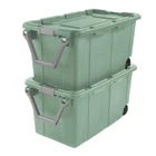 Extra Large Storage Bin 40 Gallon Wheeled Plastic Storage Container with Handle Green Pack of 2 Bring order to garages, basements, and attics with the heavy-duty design and unique features of Industrial Tote line. Be confident that stored items will stay protected in the durable 40 Gallon Wheeled Industrial Tote, the ideal portable solution for storing larger and heavier supplies. The grooved lid design and keyholes provide options for tie-downs to simplify transportation, and keep totes in place in the back of a pick-up truck. The ergonomic handle rotates up for easy pulling while the large wheels and metal axle allow for rolling over rough surfaces. The innovative drip-resistant lid provides maximum protection against items getting wet, while the tight-fit lid keeps items contained. The robust latches offer extra security that the lid will stay attached to the base, and the textured surface makes for a sure grip when carrying. The deep recessed lids provide stability when stacking for efficient use of storage space. Channeled walls provide added strength and help to resist crushing under heavier loads. The 40 Gallon Wheeled Industrial Tote is ideal for more active storage needs, store camping equipment, sports gear, tools and workshop supplies, and other bulky items. The overall assembled dimensions of this item are 36 3/4" L x 21 3/8" W x 18" H. Adult Plastic 40 Gal. Wheeled Industrial Tote Green Sage Outside Dimensions: 36 3/4" x 21 3/8" x 18" Interior Dimensions at bottom: 30 1/2" x 16" x 17 1/8" Heavy-duty construction with robust non-slip grip latches Ergonomic handle rotates up for easy pulling and large wheels with metal axle allow for rolling over rough surfaces Deep recessed lids offer secure stacking capabilities helping to maximize available storage space Tight fit drip-resistant lid provides maximum protection against items getting wet BPA-free and phthalate-free