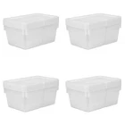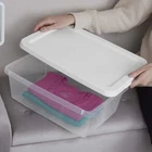Make storage easy with the Sterilite 12-Quart Clear Storage Bins Set of 4 with Lids! The clear base allows you to easily see what's inside, while the snap-on lids keep everything organized. The space-saving shape and snap-on lids allow the bins to be securely stacked to maximize vertical storage. Keep your closets and bedrooms organized by sorting and organizing a variety of household items! Perfect for organizing shoes, clothing, accessories, crafts, and more. This size easily fits on standard closet shelving. NOTE: Exercise caution when storing items, do not overload, place the heaviest bins on the bottom, and do not stack too high. The overall dimensions of this product when assembled are: 16 3/8"L x 11 1/4"W x 5 3/8"H. Sterilite 12-Quart Storage Boxes (Set of 4), Clear Storage Boxes with Snap-On Lids, White Exterior dimensions: 16 3/8" x 11 1/4" x 5 3/8" Interior dimensions at bottom: 13 7/8" x 9 1/8" x 4 3/4" Clear base allows for easy viewing of contents Snap-on lids prevent items from spilling, and recessed design allows for easy stacking Suitable for a variety of basic storage needs around the home, fits on standard closet shelves Be cautious when stacking items, placing the heaviest boxes on the bottom