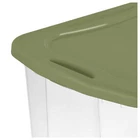 Sterilite's innovative line of EZ Carry Storage Boxes makes moving your storage easier! Unique through handles are designed to provide full grip access for comfortable lifting and carrying, as well as easier maneuvering through narrow doorways, hallways, and up and down stairs. The 70 Qt size is ideal for bedding, seasonal clothing, sporting gear, and other bulky items around the home. The clear base allows for quick viewing of contents, and the recessed lids allow same size storage boxes to stack neatly on top of each other to use vertical storage space efficiently. The 70 Qt EZ Carry Clear shares the same lid as the 95 Qt size, allowing secure stacking of both the shallow and deep storage boxes in one footprint. The 17.5 Gallon EZ Carry Tote shares the same lid so the clear and opaque versions can be stacked interchangeably. The overall assembled dimensions of this item are 24 5/8" L x 18 3/4" W x 13 7/8" H. Sterilite 70 Quart EZ Carry, Storage Bin, Full-Grip Handles, Green Outside Dimensions: 24 5/8" x 18 3/4" x 13 7/8" Interior Dimensions at bottom: 18 3/8" x 15 1/8" x 13 1/8" Carry through handles allow for full grip access and easier portability Ideal for a variety of household storage needs, with a wide range of sizes The clear base provides quick viewing of contents Deep recessed lid allows for secure stacking of multiple bases BPA-free and phthalate-free