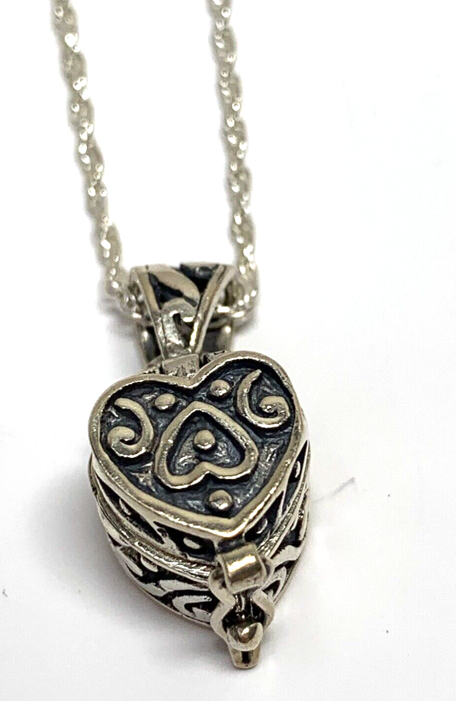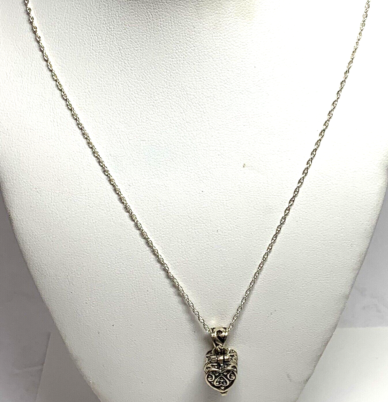Crafted with an eye for elegance, this Sterling Silver Designer IBB Ornate Heart Locket Pendant exudes sophistication. The pendant, shaped like a heart, is an exquisite charm that seamlessly blends with any style. It is delicately balanced on an 18-inch necklace, ensuring a perfect fit that complements your ensemble. The locket's metal purity is stamped at 925, indicating a high-quality silver composition that promises durability and shine. A spring-ring closure provides a secure fastening for this beautiful piece, which is versatile enough to wear for any occasion.