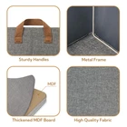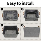 Metal Frame Structure - The shelf baskets can keep its surroundings upright even if there are no items inside. It uses a solid iron frame inside, which has a stable structure and is not easily deformed. Premium Material - These storage boxes are made of Imitation linen fabric, making them durable and easy to care for. The bottom uses thickened MDF board and can bear a load of up to 30 pounds. Easy to Use - Come in a set of 2, the storage organizers measures 14 ¾ x 10 ¼ x 8 ¼ inches. Each storage bin has 2 securely sewn, tear-resistant handles for easy pull out and transport, perfect for shelves or closet storage. Foldable Design - Quick assembly in 10 seconds, just support the built-in iron frame of the storage box. Can be easily folded and laid flat when not in use to save space. Multipurpose Storage - Storage baskets can be easily placed in closets, cabinets, side tables, cupboards, shelves, used to organize books, magazines, CDs, pet items, clothing, towels, blankets and other items to improve room neatness.