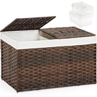 Storage Baskets With Lids: The Woven Storage Basket with Lid comes with separate open and closed covers, allowing wicker basket with lid to store items in partitions. Wicker storage basket with lid is a solution for keep a tidy living space Easy to Assemble: Wicker hamper with lid is made of PE rattan, basket with lid decorative storage is easy to assemble, if you decide to stop using woven basket with lid you can fold rattan basket with lid up for storing woven hamper more compactly. Removed and Washed Linings: Wicker baskets with lids comes with 2 removable lining bags, one of the padded bags has a divider seam and the other is without a divider; the liner of rattan storage box can be removed and washed to meet your storage needs Optimal Dimensions: Woven storage box measuring 25.2 x 15.4 x16.1 Inches, With a capacity of 27.8 Gallon (105 L), wicker storage baskets with lids is deep and can store blankets, clothes without taking up much floor space. Service Support: is committed to providing you with high-quality rattan laundry basket with lid, we are honored to have you as our customer, if you have any questions after receiving the basket storage with lid, please contact us in time