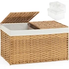 Storage Baskets With Lids: The storage basket comes with separate open and closed covers, allowing wicker baskets for storage to store items in partitions. Wicker storage basket is a solution for concealing clutter and keep a tidy living space Easy to Assemble: Wicker storage basket with lid is made of PE rattan, hamper with lid is easy to assemble, if you decide to stop using storage baskets with lids you can fold woven basket with lid up for storing wicker baskets with lids more compactly Removed and Washed Linings: Rattan basket with lid comes with 2 removable lining bags, one of the padded bags has a divider seam and the other is without a divider; the liner of wicker storage trunk can be removed and washed to meet your storage needs Optimal Dimensions: Rattan storage basket with lid Measuring 22x 13 x 13.8 Inches, with a capacity of 17.2 Gallon (65 L), wicker storage basket with liner is deep and can store blankets, clothes, without taking up much floor space Service Support: is committed to providing you with high-quality woven baskets for storage with lid, we are honored to have you as our customer, if you have any questions after receiving the lidded storage basket, please contact us in time