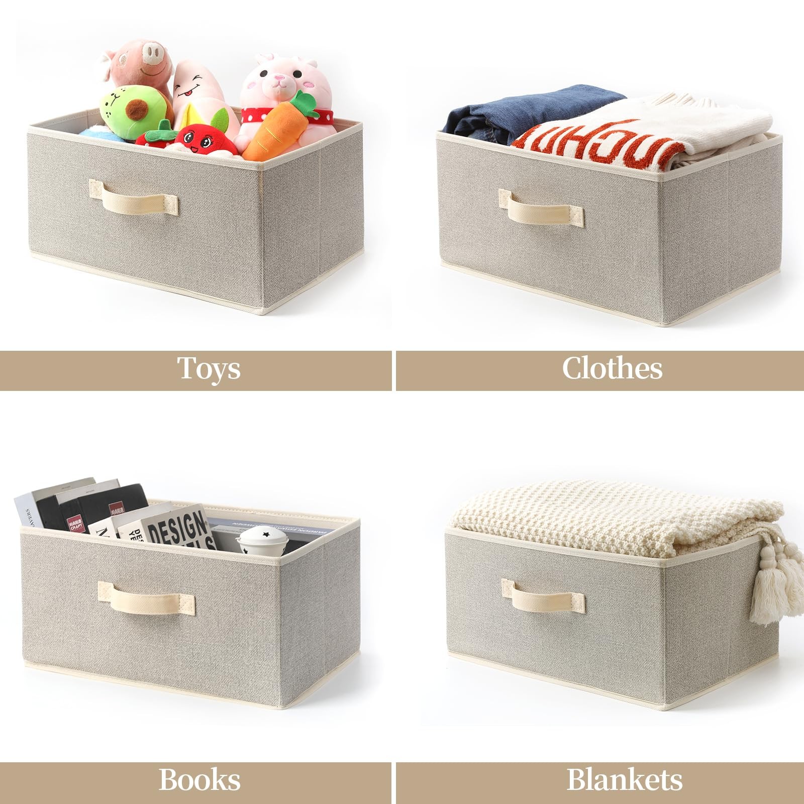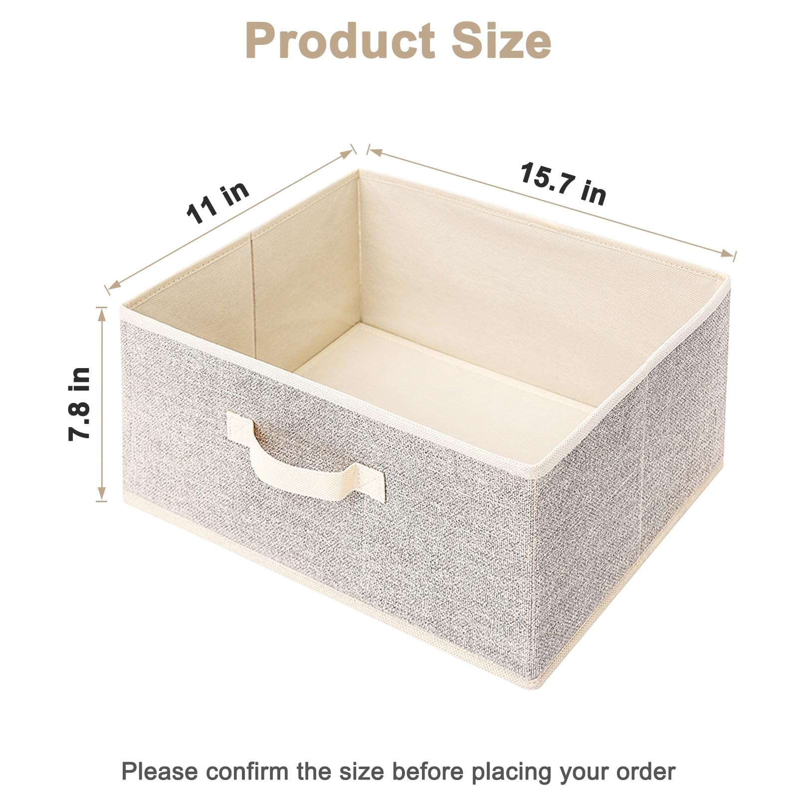 Practical fabric organizer, make home more neat and tidy. Non-woven folding organizer, 3 sizes for your choice. Suitable for living room, bedroom, study, closet. Open design makes the storage items visible at a glance and easy to find items. High quality non-woven fabrics:Thick fabric with good handfeel, Stronger and better load bearing. Exquisite carrying handle design:More humanized design, put it in the cabinet and move it with just one pull. Foldable:When not in use, it can be folded flat, taking up less space for easy storage. Information: Size:15.7"L*11"W*7.8"H inch Quantity:3 color:Natural Beige ✅Dimensions: 15.7“ L x 11” W x 7.8" H inches. The storage basket can hold approximately 24 beverage bottles, 12 large-format books, and 6 large bags of chips, as shown in the image for reference. Please carefully verify the product dimensions before placing your order. ✅Premium Quality Material: Crafted from high-quality non-woven fabrics, our storage bins are not only eco-friendly but also exceptionally durable and resistant to wear and tear. Say goodbye to unpleasant odors with our odor-free design.Fabric boxes come in set of 3. ✅Reinforced Stability: Our fabric storage baskets are reinforced with thickened cardboard and an additional sturdy base plate, ensuring unmatched stability and support for all your organizational needs. ✅User-Friendly Design: Featuring one handles for easy lifting and carrying, our decorative storage boxes are perfect for organizing every corner of your home, from closets to shelves and beyond. The cloth basket is easy to clean, just dust with a soft, dry cloth. ✅Space-Saving and Versatile: Our foldable fabric storage cubes are designed to maximize space efficiency. When not in use, they easily collapse flat for convenient storage, making them ideal for small spaces. ✅Multi-Purpose Functionality: Whether you need to organize clothes, toys, accessories, or household items, our storage boxes are up to the task. Perfect for bedrooms, living rooms, closets, and more, they offer endless possibilities for clutter-free living.
