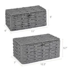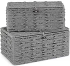 Return Policy Fast Delivery Trusted seller Storage Baskets Bin with Lid Decorative Paper Rope Handwoven Basket Organizer for Shelves Wardrobe Toilet Tank Top, Rectangular Wicker Home Decor Box for Bedroom Living Room, Set of 2, Grey Product Description Creative Design: The storage basket with lid is crafted from high-quality paper rope and features a sturdy, thick iron frame, ensuring it can accommodate various items without deformation. Each basket is designed with a lid, providing added protection and privacy for your stored items, keeping them dust-free and maintaining tidy organization. Multi-Occasion Storage: Hand-woven with chic patterns, the woven basket with lid adds a fashionable and minimalist look to any home, office, or apartment decor. It easily complements any setting and is ideal for use in shelf, desk, wardrobe, closet, toilet tank top in your living rooms, bedrooms, bathrooms, and other spaces. Not only decorative but also practical. Multipurpose Lidded Basket: These storage baskets make them convenient to store daily essentials such as towels, toiletries, toilet paper, cosmetics, skincare products and hair accessories, books, socks, snacks, and so on. The easy-to-open lid prevents dust accumulation while allowing for easy access to items. Allowing you to organize your belongings neatly creating an orderly living space. Set of 2 Basket Size: The two small baskets come in different sizes - the larger one measures 12.2"L x 7"W x 5.7"H and the smaller one measures 11"L x 5.9"W x 4.9"H. These baskets offer different capacities to meet your storage needs for a variety of small items. Ideal Gift: These decorative baskets make excellent gift ideas for friends or family members who will appreciate their functionality and aesthetic appeal. They are perfect as housewarming gifts, birthday presents, baby shower gifts, and Christmas presents among others. Shipping Returns Payment Shipping Shipping is FREE to all addresses other than APO/PO boxes in the lower 48 states. All our stock ships from US-based warehouses. Shipped via USPS or UPS (depending on location and package weight) Unless stated otherwise, all orders will ship within 24-72 hours of your payment being processed. Check our feedback to see the great reviews of FAST shipping we offer. Returns Seller does not accept returns Payment We currently accept payment via eBay managed payments only. Once payment is cleared, we will dispatch your shipment within 1-3 business days. Please refer to the "Shipping" tab for more information regarding shipping speed to your destination.