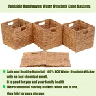 【DIMENSIONS】These baskets measure 11"L x 11"W x 11"H(Due to handmade, the BASKETS may be 1/2" measurement tolerance);To fit your cabinet the best, we suggest you to CHECK Measure thoroughly.And we suggest your cabinet inner compartment Dimension bigger than 12"! 【SAFE AND HEALTHY MATERIAL】100% ECO Water Hyacinth Wicker with no bad chemical smell, it is good for you and your family health,Water Hyacinth is an all-natural and easily renewable resource. Helps to save our environment. 【BASKETS USAGE GUIDE】1:We recommend storing baskets when not in use, they fold for easy storage;2:All new baskets have a particular natural smell of fibers that gradually disappears.3:Due to their handmade nature, each woven storage bins basket may vary slightly in shape, size, color;4.Please avoid contact with water when using, and it is best to wipe dirty areas with a dry towel. 【AS CHRISTMAS OR BIRTHDAY GIFT】Hyacinth storage baskets for those setting up a home for the first time or a lovely gift for women who furnish their homes with personality and warmth. 【WIDELY USED】Water hyacinth storage baskets a solution to many storage needs, organizing and storing nursery products, clothes & underwear, socks, towels, toiletry storage, lady’s supplies, purse & accessories, magazine & books, files, supplies. Perfect display for Christmas, Thanksgiving, Halloween, wedding, party, and banquet. Outdoor and indoor use meet your different needs!