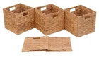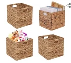 Add a touch of modernity to your nursery or home with this set of four square wicker cube baskets. These baskets are made of water hyacinth and come in a natural finish, making them perfect for storage and laundry. Each basket measures 11 inches in length, width, and height, and has four compartments, making them perfect for organizing your items. The baskets are also foldable, making them easy to store when not in use. This basket set includes four pieces and does not come with a lid. Get this set of baskets today and keep your home organized in style.