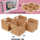 Storage Baskets Wicker Cube Baskets Rectangular Laundry Organizer,Foldable Handwoven Water Hyacinth,Set of 4 pcs Baskets for Home Office Room 【Safe and Healthy Material】100% ECO Water Hyacinth Wicker with no bad chemical smell, it is good for you and your family health,Water Hyacinth is an all-natural and easily renewable resource. Helps to save our environment WIDELY USED: Water hyacinth storage baskets a solution to many storage needs, organizing and storing nursery products, clothes & underwear, socks, towels, toiletry storage, lady’s supplies, purse & accessories, magazine & books, files, supplies. Perfect display for Christmas, Thanksgiving, Halloween, wedding, party, and banquet. Outdoor and indoor use meet your different needs Include:4 Pcs Baskets!These baskets measure 11.2"L x 11.2"W x 11.2"H AS CHRISTMAS OR BIRTHDAY GIFT: Hyacinth storage baskets for those setting up a home for the first time or a lovely gift for women who furnish their homes with personality and warmth We recommend storing baskets when not in use, they fold for easy storage