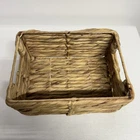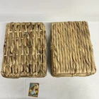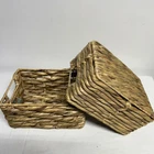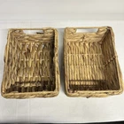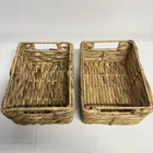 This is a set of two medium-sized rectangular storage baskets made of water hyacinth material with a twisted weave design. The baskets come in a natural color and feature hole handles for easy carrying. Come from a clean home. Thank you for viewing this listing. Please message us with any questions.