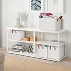 【Sturdy Construction】Our storage baskets for shelves are reinforced with upper metal frame and fiberboard bottom to keep basket shape and upright. With the 2 leather handles securely sewn to the sides of the fabric bins, provides a comfortable grip while ensuring that you can easily carry items without tearing the handles. 【Store Plenty】These cloth storage bins measure 15" L x 11" W x 10" H, can handle a wide variety of items. including store clothes, towels, blankets, books, magazines, office and craft supplies, or more. these basket organizer are perfect for any organizational need. 【Versatility】These storage boxes for organizing pretty for living room, bedroom, closet, cabinets, dorms, bathrooms, utility room, office even in the hallway. In the bathroom, fabric baskets for storage can hold towels, toiletries, and grooming essentials. In the bedroom, these closet organizers and storage bins become a wardrobe extension, offering ample space for clothes, blankets to improve room neatness. 【Stylish and Decorative】Minimalist design and neutral color can be integrated into home decorations and styles. These decorative storage bins provide functional storage solutions, while adding a stylish touch to a living room, bedroom, office, or personal space.