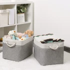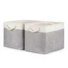 The fabric baskets can hold magazines, books, shoes, clothes, towels, blankets, pet toys, office supplies, gifts. Large storage baskets are ideals for closet, shelves, pantry, living room, bedroom, bathroom, playroom, etc. Sturdy rectangle baskets may be used to hold DVDs, magazines, books, shoes, clothes, towels, blankets, pet / dog toy storage, mail basket, organizer storage for office supplies, gifts, baby bin. Multi-purpose storage we prepare for you: Closet in rooms: clothes, hats, belts, etc Living room: magazines, books, controls, remotes, candles, DVDs, board games Bathroom: tissue, sundry storage, combs, beauty supplies, makeup Family Room: toys, plush, blankets, games, clothes Shelf organizers Laundry room: cleaning supplies, detergent, cloths,etc General Storage: pantry dry goods, linen and towels, storage basket for groceries in the car The storage baskets are perfect for organizing and cutting down on clutter, can be used to organize clothes, toys, magazines, art & craft supplies, files, albums, socks and more. Fabric baskets set can be versatile for anywhere you can think of. 2-Pack Large Fabric Storage Baskets: The size of each fabric storage basket is 16 x 12 x 12 inches. Large capacity allows you to store more clothes, toys or other sundries. Designed to perfectly fit for most cube organizers or closet. Made of thick fabric and 2.5mm EVA. canvas storage bins for home storage are reinforced by the upper metal support frame to maintain high structural integrity. With good abrasion resistance Multipurpose Storage: These linen storage baskets for organizing provide an efficient solution in your home, office and travel to meet many storage needs such as organizing clothes, towels, blankets, toys, baby products, pet products, magazines, newspapers, camping tools, etc. Its storage capacity can keep the family tidy and beautiful, shelf baskets for organizing closet are a wonderful choice Cotton Rope Handles and Premium Fabric: The canvas storage bins equipped with handles for moving conveniently. Sturdy soft handles on both sides are convenient to retrieve from shelves. These storage baskets are made of durable fabric which is strong and lightweight Foldable Baskets Set: Simply fold the canvas basket down flat for space-saving storage when not in use or when needing to transport. If you mind the creases, you can use an iron to iron the creases in the basket. If you do not use an iron, the creases will slowly disappear as you store your items. Easy to Clean: The fabric baskets are easy to clean, dusting the basket with a soft dry cloth is recommended. Spot clean with light soapy water when needed. Not recommended to machine wash because there are a metal frame support inside