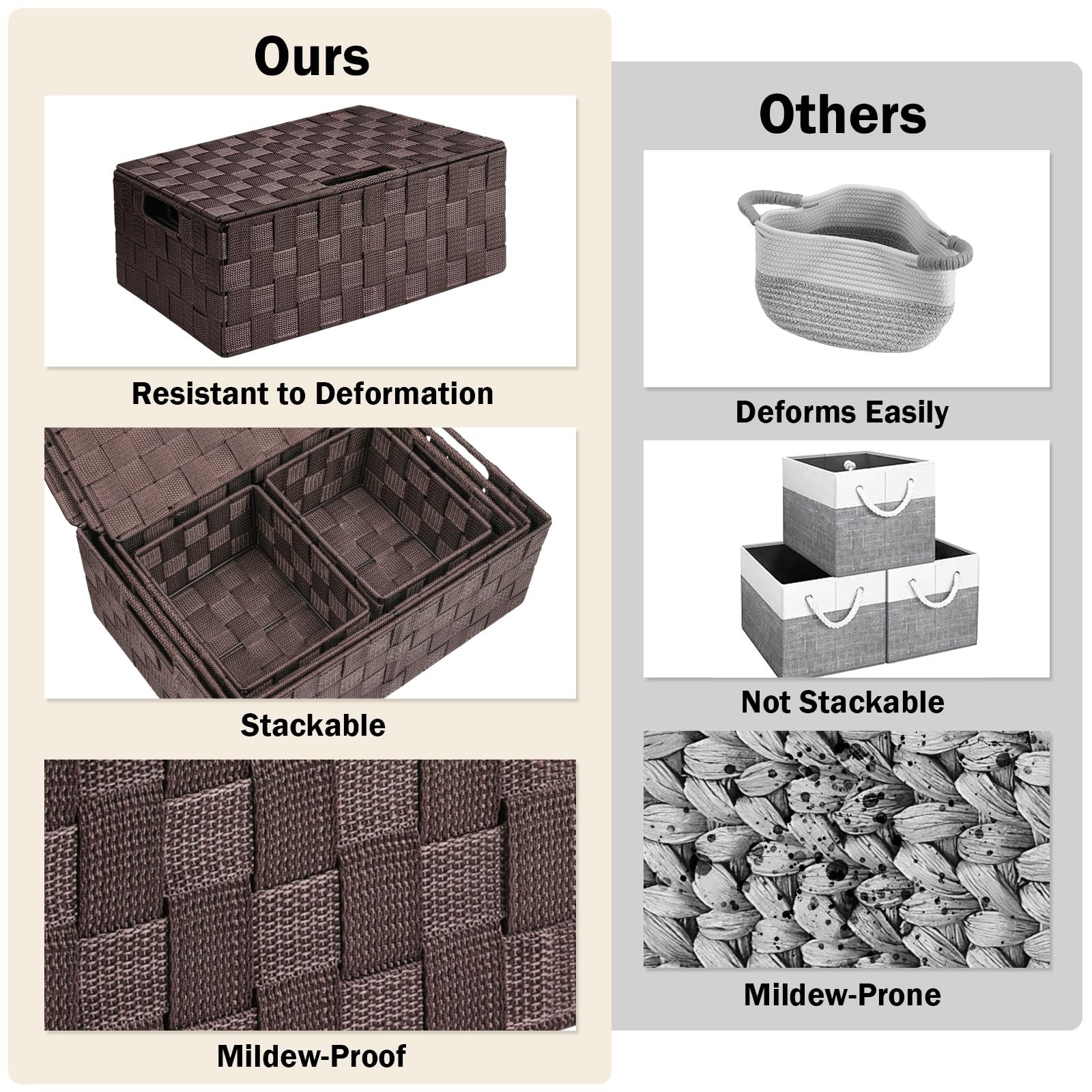 Distinct Product Template Greetings & Warm Welcome Browse our curated selection and discover items perfectly suited for your everyday needs. Storage Bins Baskets for Organizing with Lids, Storage Baskets for Shelves Stackable Woven Basket, Gift Small Basket Storage Cubes, Decorative Wicker Basket with Built-in Handles (5 Pack, Brown) Detailed Info Elevate your organization game with our premium Storage Bins with Lids, a set of 5 versatile, hand-woven baskets designed to fit seamlessly into various spaces. Crafted with soft, durable polypropylene yarn and reinforced with a hard metal frame, these rectangular baskets boast a modern, solid brown hue. The set includes an extra-large (13.7" x 9.4" x 5.3"), large (12.6" x 8.4" x 5"), medium (12" x 7.9" x 4.5"), and two small (6.7" x 5.4" x 3.9") sizes, each with a lift-off lid for easy access and privacy. Ideal for homes and offices, these storage bins are perfect for clothes, crafts, toys, books, and more. Stackable and stylish, they bring a touch of elegance to any space, from living rooms to closets. Key Selling Points Set of 5 Baskets for Organizing: Multiple sizes of storage bins for different items, perfect storage cubes for closets and shelves. Storage baskets with lids can better protect your privacy and make your home or office look more tidy. Great for gift baskets, Ideal gift for Easter, Christmas, Thanksgiving, Valentine's Day or baby girl's birthday. Soft Material & Strong Frame: Woven basket is hand-woven with polypropylene yarn. The material of wicker basket has a sheen to it and it is surprisingly soft. Will not scratch items. At the same time, Small basket has a hard metal fixed frame features built-in carry handles, Will not deform like cloth basket, And has a longer service life. Stackable Design: Wicker Storage baskets feature a space-saving stackable design, making them ideal for organizing any room in your home. Rope basket set includes 5 sizes for versatile storage, Extra Large: 13.7" (L) *9.4" (W)*5.3" (H), Large: 12.6" * 8.4" * 5", Medium: 12" * 7.9" *4.5", Small (2 included): 6.7" * 5.4" * 3.9". Multipurpose Shelves Baskets: Wooden basket has 4 different sizes perfectly meet the various needs of the family. As storage clothes, Craft, Child toy, Bedding, photo, pet toy, book and magazine, bathroom towel and toilet, cosmetic storage and many other uses. Versatile for All Space Storage : Storage box can be stacked to various products. Decorative basket ideal for bathrooms, living room, bedroom, utility room, kids room, craft room, office, closet, kitchen, condos, laundry room, bar cabinet storage, toilet. Shipping & Handling All orders are dispatched to the address on your eBay account. Typical handling time: 1-2 business days. Estimated delivery ranges from 3-7 business days, depending on location. Returns & Assurance We aim to provide a stress-free experience. If an issue arises, initiate a return via eBay within 30 days of receipt. Ensure items are in original packaging and condition to qualify for refunds. Contact us through eBay’s message system if you encounter any difficulties. Payment Info We support major credit cards and PayPal through eBay’s secure gateway. Double-check billing details to ensure a quick and easy transaction. Customer Support Need further assistance? Send us a message via eBay’s platform. We typically respond within 24-48 hours.