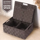$ 7.33Wicker Laundry Basket with Lid Rattan Trash Can Toy Storage