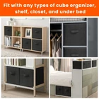 【QUALITY STRUCTURE】These cubby storage bins are made from tough non-woven fabric with excellent sewing to make them last, heavy cardboards added at the sides and bottom to make this storage bins rigid enough to hold a heavy load. 【FIT WITH MOST OF FURNISHING】Measuring 13x13x13 inches, our 8 pack Black clothes storage bins could fit perfectly with most of cube organizer, shelf, closet, from bedroom to playroom to laundry room, to store clothes, linens, toyes, books etc. Great for dorm room. 【EASY GRIP】These fabric storage cubes have two sewn-in handles on the sides for easy room-to-room carrying or removing on a shelf. With the reinfored handles, they could work well as drawers, open-top bins, or storage baskets for shelves. 【COLLAPSIBLE DESIGN】These cube storage bins could be fold flat for compact use when not in use. 【SPACE SAVING】These square storage bin is dorm room essentials and apartment essentials for closet storage and organization, making all rooms neat and clean.