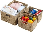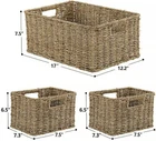 Function and Decorative: whether you need a place to put blankets, towels, pillows, or any other essential items, these woven baskets make the perfect pick with their balance of chic style and functionality. Sturdy and Thick: the metal wire frame offers a sturdy structure for the storage containers, also the material over the frame is thick. Built-in Convenient Handles: the two handles at the top make the woven baskets for organizing easy to carry from room to room as needed. Materials: these pantry baskets are made of natural seagrass material, the wicker baskets will add plain sight to your room. Natural and Sustainable: these storage baskets for shelves are made of naturally grown seagrass in a woven pattern, the material is natural and friendly to the environment. Product information Technical Details Material Sea Grass Color Natural (Seagrass) Shape Rectangular Product Dimensions 17"D x 12.2"W x 7.5"H Style Modern Room Type Garden, Kitchen, Living Room, Bedroom, Dining Room Recommended Uses For Product Storage Number of Pieces 3 Finish Type Natural With Lid No Handle Material Seagrass Closure Type Open Top Special Feature Stackable, Handle