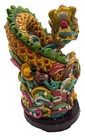 Chinese Dragon Sculpture Ornament Figurine H: 14 cms approx. 840 grams approx. Ceramic with a wood base. VGC. No chips or damage.