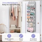 Fit Large Shoes & Boots: Deeper and wider pockets can holder large shoes or boots. The shoe rack for door's unique compartment design and different pockets keeps your shoes neat and organized Large Capacity: Includes 16 pockets of 4 different sizes, holds up to 20 pairs of shoes. The shoe rack for closet can make full use of the space behind the door. Size 67.7"(H) x 16.7"(W) x 7"(D) Clear PVC Material: Fully transparent design on sides and clear layers at the bottom allows you to identify the items in it quickly. Shoe hanger organizer for closet's PVC material is also easy to clean High Quality: It's made of tear-resistant oxford fabric with cardboard inserts and support tubes, thick metal hooks can hold up to 50 pounds. Which makes the shoe organizer door hanger solid Easy to use: All you need to do is hang it from the door and you will get a great storage solution! The hanging shoe organizer for closet can be used in different settings, such as hang in the closet, pantry, bathroom, garage, etc.