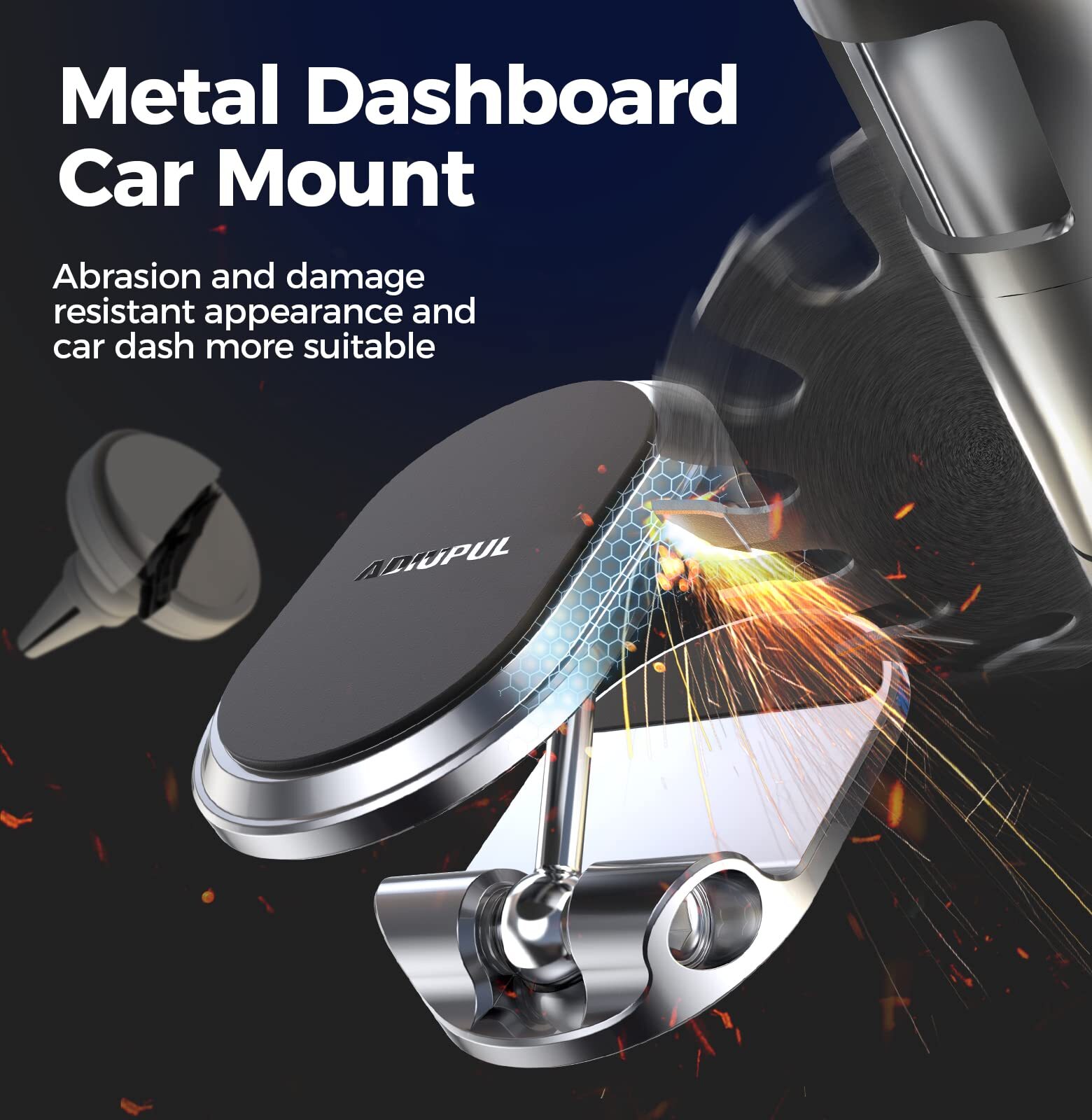 Multi-functional Magnetic Phone Mount: All phones even with Mag-safe must be used together with the included metal plate!!!!!!Please check the product page details for installation instructions.This magnetic phone holder for car is used for the dashboard, instrument panel, back of the screen, desktop and other applicable areas.There are heat resistant metal mount for your car, so don't miss it! magnetic phone car mount quality material: You must be in great need of a hard-wearing metal mount! Our car phone holder is made of very strong titanium metal and silicone, which is durable and protects your phone. Magnetic suction and 3M fixing adhesive: Cell phone holder built-in 6 N52 highest magnetic suction magnet, hold your phone firmly, never fall. 3M adhesive using the most advanced technology in 2025, solve the trouble can not stick, firmly fixed bracket, please note: please find the most suitable place to install the bracket before use, the location size is 40mm * 60mm.Please check the installation steps in the manual or product page in detail and follow the instructions strictly!! Universal Compatible Magnetic Car Holder: There is no limit to the size of the mobile phone. This magnetic car holder is compatible with all smartphones, iPhone 16/16 Pro/16 Mini/16 Pro Max/15/15 Pro/15 Mini/15 Pro Max/14/14 Pro/14 Mini/14 Pro Max/13/13 Pro/13 Mini/13 Pro Max/12/12 Pro/12/12 Mini/ SE / 11/11 Pro / 11 Pro Max / XS MAX / XS / XR / X / 8 / 8Plus / 7 / 7Plus / 6 6s Plus and Samsung Galaxy Note20/ S20 / S20+ / S20 Ultra 5G / Note10 / Note9 / Note 8 / S10. (Note: The metal plate needs to be attached to the back of the phone or phone case) What You Will Get:1*Metal dashboard phone mount, 2* metal plate,1*extra 3M adhesive,One-year warranty and lifetime after-sales service. Following conditions so that you get a car mount that is well fixed to the dashboard.1.The surface to which the mount is affixed is at least 40*60mm and is NOT Leather, Oiled, Uneven surface.3.The mounting surface will be wiped with alcohol cloth and wait for it to dry.4.Install it in the area position and press it for 3-5 seconds.5.Wait more than 12 hours to use, it needs time to fit the position.6.Sticker can only be used once and cannot be shifted to a different location after installation.