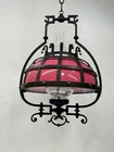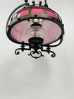 This stunning ornate antique chandelier from the pre-1890s features a large size and a beautiful pink glass shade, making it a standout piece in any space. Crafted from cast brass, this elegant chandelier exudes a sense of vintage charm with its intricate details and antique design. The 1881 brass metal hanging oil lamp adds a touch of historical significance to this unique light fixture, perfect for adding a touch of luxury and sophistication to any room. An overall very good condition for its age, there are no chips or cracks in the glass, but it does need cleaning. Patented, December 15, 1881, Engraved in the other side is electric slide chandelier. The glass oil holder has a uranium glow. The chandelier will be double boxed, insured, and signature confirmation will be added to ensure it’s safe delivery.