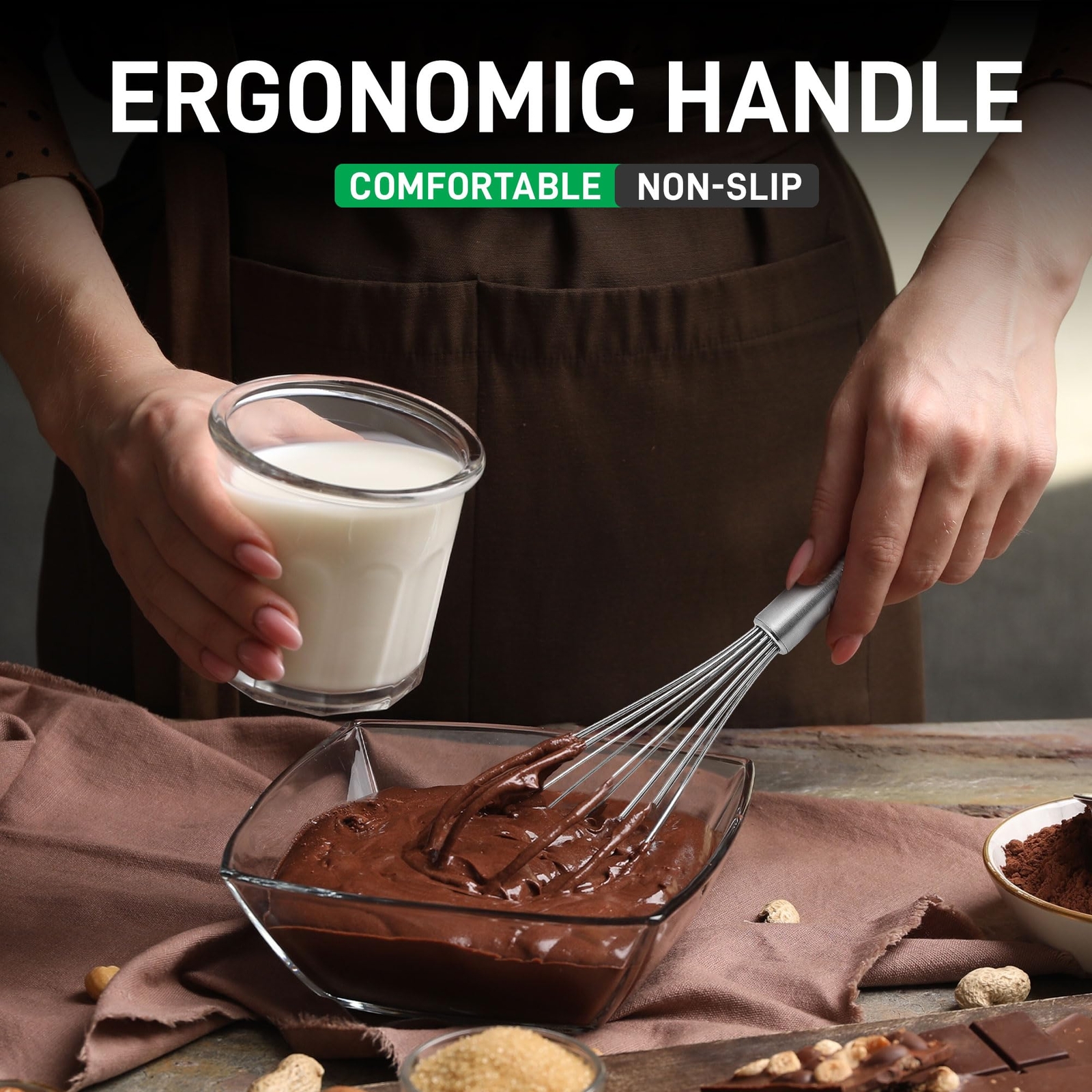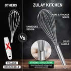 Zulay (3 Pack) Stainless Steel Whisk Set 8" 10" 12" - Sturdy 7 Wire Whisks For Features: PREMIUM STAINLESS STEEL WHISK: Elevate your baking game with our balloon wire whisk - the key to smooth, lump-free batter. The sturdy, food-grade wires offer the durability to whisk thick mixtures. You won’t have to worry about rust or bends with our egg whisks. MULTIPLE SIZES: Our whisks for cooking come in three different sizes(8”, 10”, 12”), suitable for all your mixing tasks in the kitchen. From combining dry ingredients to making fluffy scrambled eggs or salad dressings, this whisk set does it all! NO MORE HAND FATIGUE: Our balloon-shaped baking whisk, designed with a comfortable grip handle, lets you quickly mix up a fluffy batter without getting tired. Experience the joy of baking with your friends and family using this metal whisk. EASY TO CLEAN AND STORE: Removing dried batter is super simple with our kitchen whisks. Toss these in the dishwasher or wash with warm, soapy water for quick cleaning. The handle is designed with a hanging hole for spacing-saving storage. HASSLE-FREE, ZULAY GUARANTEE: We are a family owned USA business that believes in providing customers with the best quality products. Our wire whisks for cooking are backed with a lifetime warranty. Features: PREMIUM STAINLESS STEEL WHISK: Elevate your baking game with our balloon wire whisk - the key to smooth, lump-free batter. The sturdy, food-grade wires offer the durability to whisk thick mixtures. You won’t have to worry about rust or bends with our egg whisks. MULTIPLE SIZES: Our whisks for cooking come in three different sizes(8”, 10”, 12”), suitable for all your mixing tasks in the kitchen. From combining dry ingredients to making fluffy scrambled eggs or salad dressings, this whisk set does it all! NO MORE HAND FATIGUE: Our balloon-shaped baking whisk, designed with a comfortable grip handle, lets you quickly mix up a fluffy batter without getting tired. Experience the joy of baking with your friends and family using this metal whisk. EASY TO CLEAN AND STORE: Removing dried batter is super simple with our kitchen whisks. Toss these in the dishwasher or wash with warm, soapy water for quick cleaning. The handle is designed with a hanging hole for spacing-saving storage. HASSLE-FREE, ZULAY GUARANTEE: We are a family owned USA business that believes in providing customers with the best quality products. Our wire whisks for cooking are backed with a lifetime warranty. eBay integration by