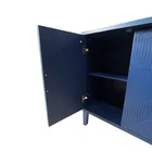 Product Features Exquisite Carving: Elevate your living space with the intricate carved surface of this cabinet, adding a touch of elegance and sophistication to any room. Craftsmanship and Durability:Made of MDF with solid wood veneer, this cabinet is not only visually appealing but also built to last.The sturdy solid wood legs provide stability and support. Curved Desktop: The curved design of the desktop, with a widened extension effect in the center section, provides additional workspace while maintaining a sleek and modern aesthetic. Quality Hardware:Enhanced with zinc alloy handles, the cabinet exudes a sense of luxury and refinement, complementing its overall design. Ample Storage Space:With two separate enclosed cabinets and three large drawers, this cabinet offers abundant storage space to keep your belongings neatly organized and easily accessible. Versatile Usage: Whether you place it in your living room, dining room, or bedroom, this versatile cabinet adds both storage and style to any space. Use it as a display case for your cherished collectibles or as a functional storage solution for everyday items. Built-in Adjustable Shelf: The cabinet is equipped with adjustable shelf that can be set at three different heights, providing you with customizable storage solutions to accommodate various items. Safe and Easy to Assemble:With simple assembly instructions and easy-to-clean surfaces, this storage cabinet is both quick and hassle-free to put together and maintain, saving you time and effort in the long run.Even after years of use, it will not fade or damage, maintaining a good appearance.The storage cabinet are equipped with anti-tipping devices to protect you and your family from potential hazards. Description Features: Experience the perfect blend of style and functionality with this exquisite cabinet, designed to enhance your home décor while offering practical storage solutions.Its exquisite craftsmanship, ample storage space, versatile functionality, and sturdy construction make it a must-have addition to any room. Whether you place it in your living room, dining room, or bedroom, this cabinet is a versatile piece of furniture. It can be used as a stylish storage solution, a display case for your treasured collectibles, or even as a media console for your entertainment devices. Specifications: Color Navy Blue Material MDF with solid wood veneer+pine legs Handle material zinc alloy Product Dimension 55.12"L x 15.75"-17.72"W x 32.68"H Weight Capacity Tabletop: 100lbs Shelf: 60lbs Drawer: 20lbs Shelf adjustable or not Yes Assembly Required Yes Package Number 1 Notice: 1. Due to lighting or display, the actual product color may differ slightly from the image. 2. Manual measurement was used, and there may be some reasonable errors. Curved Desktop: The curved design of the desktop, with a widened extension effect in the center section, provides additional workspace while maintaining a sleek and modern aesthetic.