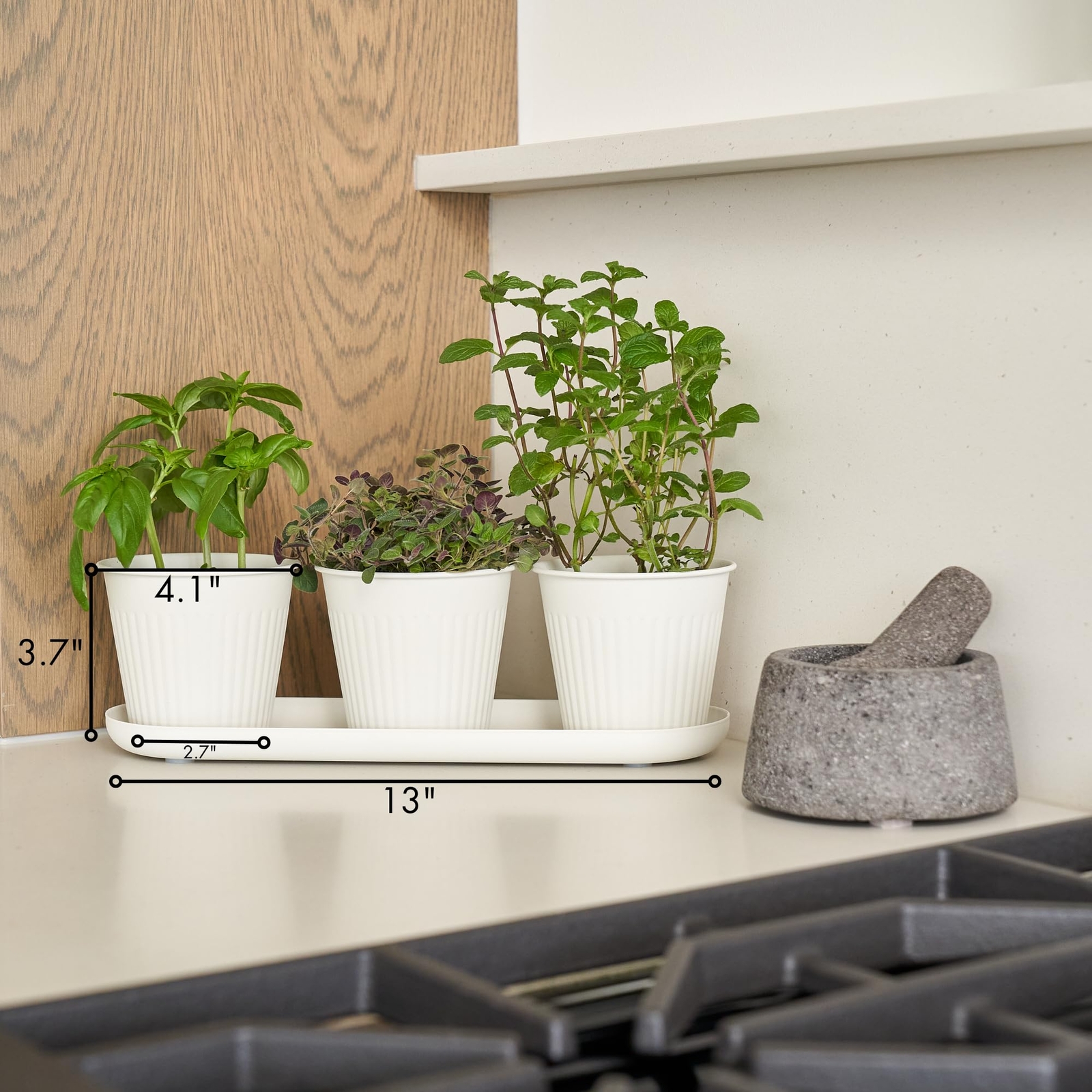Beautiful Herb Garden Planter Indoor Set Of 3 For Any Kitchen Window Sill Or Cou Create Your Own Mini Indoor Herb Garden: Add some flavor to your home! Starting your own indoor herb garden is super easy with KIBAGAs’ indoor herb garden planter set. Grow herbs, veggies, small flowers or succulents, the versatile planter makes it absolutely convenient and the perfect kitchen decor Decorative Herb Pots Set W/ Tray: Growing plants at home - with style! The charming indoor herb planter set comes in a set of 3 cute planter pots and a matching tray suiting any interior beautifully. It’s also a lovely & useful gift for a housewarming party! Premium Design For Fresh Herbs All Year: The pots are designed to allow great growing conditions getting you on the way to a thriving indoor herb garden! Sturdy & Rust Free Pots - Long-Lasting Joy: Whether you want to grow herbs & co. all year round or you just like the peace of a cute little indoor garden, the herb planters - made from powder coated galvanized steel - are your durable, rust free gardening buddy Perfectly Sized Kitchen & Windowsill Planter: Keep your fresh herbs like basil or parsley close to hand for any culinary creations! The pots (4.1” top dia., 3.7” height) and the 13x 4.1” tray turn your kitchen countertop or windowsill into an aromatic green oasis KIBAGAS’ Herb Pot Set: Start Your Indoor Herb Garden With Ease & Style! Add some color, flavor & (green) life to your kitchen! KIBAGA brings you the perfect indoor herb planter set to get started and grow your own herbs & spices, veggies, small flowers and succulents right in your kitchen. Experience the joy of gardening all year round as you watch your greens thrive and grow! The herb garden planter set comes with 3 cute pots and a matching tray. Made from powder coated galvanized steel, the planters set is not only sturdy and long-lasting, but will also stay rust free. The set is specifically designed for indoor growing conditions with drainage holes that allow any excess water to drain out, preventing the risk of getting root rot and promoting healthier plants. And the tray? Not only pleasing to the eye, but also super functional when it comes to catching any over watering. Talking about pleasing to the eye, the herb planters are absolutely decorative no matter where in your home you are going to start your miniature indoor garden. The indoor homegrown basil, parsley, rosemary & more are always close to hand, with your herb pots being perfect for the kitchen counter, worktops, bay window sills and table. A thoughtful gift that will be truly cherished! The cute herb planters set also makes a wonderful gift for a housewarming party or any other occasion. Modern, useful and so chic as kitchen decor! Measurements of the pots are 4.1” (top diameter) & 2.75” (height) and the tray is 13” long and 4.1” wide. Shipping We offer FREE shipping on all orders! We ship within Three business days of payment, usually sooner. We use a selection of shipping services such as UPS, FedEx, USPS etc. We only ship to the lower 48 states, no APO/FPO addresses or PO Boxes allowed. Local pickups and combined shipping options are not provided at this time. Return You can return a product for up to 30 days from the date you purchased it. Any product you return must be in the same condition you received it and in the original packaging. Please keep the receipt. Payment We accept payment by any of the following methods: PayPal Please pay as soon as possible after winning an auction, as that will allow us to post your item to you sooner! Feedback Customer satisfaction is very important to us. If you have any problem with your order, please contact us and we will do our best to make you satisfied. Contact Us If you have any queries, please contact us via ebay. We usually respond within 24 hours on weekdays. Please visit our eBay store to check out other items for sale! Thank you for shopping at our store.