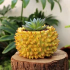 Feature: 1. Durian Shape Design: Desktop flowerpot features an exquisite durian design that stands out beautifully. Its unique, attractive aesthetic adds a touch of greenery to both indoor and outdoor spaces that would brighten up any corner. 2. Resin Construction: Expertly crafted with a well manufactured resin texture, the flower pot ensures durability and lightness. This feature makes it both easy to move around and effortless to clean, adding to its functional value. 3. Versatile Usage: Small succulent pot serves multiple purposes, it can be used as a home decoration, office decor or could add charm to your balcony as a mini landscape. Whether you're sprucing up your living room or uplifting your office decor, this flowerpot makes a stylish choice. 4. Ideal for Succulents: Create a vibrant garden ambiance by growing succulents in this flowerpot. Its design promotes optimal growing conditions, helping you cultivate healthy and beautiful plants effortlessly. 5. Perfect Gift: With its unique durian design, this succulent flowerpot makes a charming gift to friends and family, especially those with a green thumb. It's a simple yet thoughtful offering that combines functionality and style. Specification: Item Type: Durian Flower Pot Material: Resin Size: Approx. 11.2x11.2cm / 4.41x4.41in Weight: Approx. 256.00g / 9.03oz Package List: 1 x Durian Flower Pot