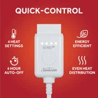 Sunbeam Slate Microplush Sherpa/Faux Shearling Heated Throw wraps you in luxurious warmth, perfect for those chilly cold nights. Imagine sinking into the rich and ultra-cozy microplush with reverse Sherpa/Faux Shearling fabric, keeping you toasty and comfortable while you relax. The stylish 50" x 60" electric blanket makes a great accessory while relaxing on the couch, bed or your favourite chair and the slate color adds a stylish touch to any décor. This throw features an easy-to-use push-button controller with 4 adjustable heat settings, so you can find your perfect temperature. The 4-hour auto shut-off function ensures added peace of mind. Premium heated wires are equipped with advanced technology to ensure continuous even heat distribution. When it’s time to clean, simply detach the controller from the throw and place in the washing machine and dryer for easy care. It stays silky soft wash after wash. Sunbeam is an American brand trusted for over 125 years in electric home appliances. All Sunbeam electric bedding products are ETL certified. Effortless warmth: Easy-to-use push-button controller Customizable comfort: 4 heat settings: warm, low, medium, high Safety first: 4-hour auto shut-off, overheat protection, certified: cETLus, OEKO-TEX Rich and ultra cozy material: Softest, rich microplush with reverse sherpa/faux shearling fabric, ideal size to snuggle, 50" x 60" Multi-Colors Available: White & Black Buffalo Plaid, Red & Black Buffalo Plaid, Slate Easy Care: Machine washable, dryer safe, 100% high-quality polyester