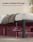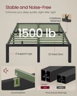【SUPERFAST ASSEMBLY】Set up your bed frame in about 10 minutes. Simply snap the tubes together and pound them in place with the included mallet. Then, slot in the slats, and you'll have it ready for your bedroom or guest room—no screws required! 【NOISE-FREE FOR SOUND SLEEP】Experience a quiet night's sleep with this metal bed frame. The sound isolators on the frame tightly lock the slats, preventing any movement while eliminating any creaks or squeaks for a truly restful night 【1500 LB WEIGHT CAPACITY】Built to last with 1.6" x 1.6" square steel legs and a 0.05" wall thickness, this queen bed frame supports up to 1500 lb without wobbling. Enjoy ultimate stability and peace of mind, knowing your bed can handle it all with ease 【RETAINERS PREVENT MATTRESS SLIDING】Keep your mattress securely in place with 3 included removable retainers. These retainers ensure that your mattress won't shift or slide, providing a stable sleeping surface all night long 【PLENTY OF UNDERBED SPACE】Optimize your bedroom storage with this queen-size bed frame that is elevated by 16". This ample underbed space is perfect for storing baskets, suitcases, and other items, keeping your bedroom organized