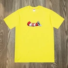 This Supreme Cat in the Hat Tee in yellow is the perfect addition to any streetwear fan's collection. Made for men in a regular fit size M, this t-shirt features a playful cat graphic that adds a touch of fun to any outfit. The shirt is made of high-quality materials, ensuring both comfort and durability. The iconic Supreme brand is known for its unique designs and limited-edition releases, making this t-shirt a must-have for collectors and fashion enthusiasts alike. The yellow color is eye-catching and on-trend, while the Cat in the Hat theme adds a playful touch. Add this shirt to your wardrobe today and make a statement with your style.