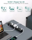 【10-IN-1 Extension Cord with Multiple Outlets】- The slim power strip with 6 AC surge protector outlets (15A/1875W) and 4 usb ports (3.1A/15V), provide ample space for multiple devices and adapters to be plugged in simultaneously. It can charge your cellphone, laptop, tablet, cameras without a variety of converters, save your space and make your desktop organized. Suitable for the home, office, and college dorm room essentials. 【2 USB- C Fast & Smart Charge】- Added extra 2 USB C ports for your devices, the power strip with USB C ports can charge up to 5V/3A. USB-A ports can charge up to 5V/2.4A Max. With smart charging technology, the outlet extender can auto-detects your devices and reach faster charging efficiency, perfectly fit for your iphone, ipad, tablet, bluetooth earphone etc. 【Ultra Thin Flat Plug & 5ft Heavy Duty Power Cord】 - With only 0.35-inch flat wall plug and 45-degree right angle design, this flat outlet extension cord is much thinner than traditional plugs. Flat plug power strip can close to the wall easily and hide in the back of furniture, bed or refrigerators, save every space for your home. 5-foot extension cord offers flexibility and allows you to easily reach distant power outlets, making it ideal for home, office, school, dorm room to use. 【Easy Mount on Wall and Desk 】- Mountable power strip with unique screw fixation design on both end, allow this white compact extension cord securely installed in various applications (4 screws included). It is easy for mounting to walls, desks or furniture. Keep your desktop organized. The low profile extension cord also can be stable on your desktop or nightstand without slipping off, the flat extension cord makes it lighter than ordinary power strip. 【Multi Safety Protection with ON/OFF Switch】- This power strip has surge protection (900J), overload protection, short-circuit protection, over-current protection, short-circuit protection to help keep your devices safe. The on/ off switch can automatically shut off when the power exceeds rated value, to protect your expensive devices like computers, TV etc. ETL safety certified, with extension cord and other major components certified by UL. Product Description 15W USB-C Fast Charging Desktop Charging Station with USB Ports Dual Fast Charging USB-C Ports Upgraded Power Strip added 2 USB-C ports to meet more charging demand. USB-C port can up to 15W/5V/3A max which is up to 30% faster than other chargers. Smart Charging Technology It can auto-detects your connected devices and can reach faster charging efficiency. 4 USB ports total 5V/3.1A output, each USB-A port provide 5V/2.4A max. Easy Wall Mounting Wall Mountable Power Strip Unique Wall-Hanging Hole Design Addtam mountable power strip have unique screw fixation design on both end. No additional measurement required, the power strip can be installed on the wall or desk easily with two mounting holes. This white power strip can be securely installed in various applications 4 Mounting Screw Included Come with 4 screws, the slim power strip can be securely installed on workbenches, wall mounts, behind tv, garage, bedside, under counters/desk/cabinet, dresser Plug in Anywhere Ultra Thin Flat Plug Power Strip 0.35 inch Low-Profile Flat Head Flat plug could be easily hide in the back the furniture, which can maximum save your outlet space occupied 0.12 inch Ultra Thin Flat Extension Cord Flat cable is thinner than the standard round cable. It could run snugly under the carpet, sofa, even your room door 1 Surge Protection 2 All-round Protection Overload Protection Switch With an integrated circuit breaker switch, it will trip off automatically and safeguards your expensive computers, tv, and all other electronics. Wall Mountable Design Additional 2 keyholes on back can allow you install this flat wall extension cord on wall, workshop etc. Save your spaces. USB C Fast Charging Station All USB Ports Output is 5V/3.1A, 15W max which is 30% faster than other power strip.(Note: The UCB C port is not Quick Charger 3.0) 5FT Heavy Duty Extension Cord This extension cord is UL approved with right angle plug is perfect for the hard-to-reach outlets behind your bed or sofa. Addtam Surge Portector Power Strip - Ultra Thin Flat Outlet Extension Cord Turn a single outlet into 6 AC outlets, 2 USB-C port, and 2 USB-A ports to power up a wide range of appliances and mobile devices.