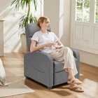 Explore adaptability with our Recliner Chair featuring a dynamic adjustment range between 90 and 160 degrees, perfect for various needs from sitting upright to lying flat or simply relaxing with feet propped up. With its unique design of a dual foot extension and a reclining back, it's the ideal relaxation companion. Experience ultimate relaxation with our modern Recliner Sofa Chair equipped with a comprehensive massage function. It boasts 8 distinct massage modes, 2 vibration alternatives, and customizable intensity. A dedicated lumbar massage area adds comfort and it’s envisioned to cook up an ideal 15-minute relaxation with easy control via a remote. It's the best choice for TV sessions, leisure reading, or simply basking in soothing music. Presenting both comfort and sturdiness, this massage chair is crafted with superior fabrics ensuring user comfort and easy maintenance. Advantaged by a high-resilience sponge fill this chair allows for high permeability and extended, fatigue-free sittings. The robust hardwood frame ensures safety, lasting durability while promoting stability. Our Recliner Chair launches an enhanced footrest for the greatest relaxation experience. Get lost in your favorite book, unwind to tranquil tunes, or rejuvenate with a brief nap feeling fully relaxed. It's versatile, perfect not just as a home furnishing element but also as a leisure piece for commercial spaces and theatres, offering support for up to 275lbs. Experience hassle-free setup with this bedroom chair designed for straightforward assembly. The entire process from unboxing to complete setup takes only about 5 minutes. For any potential issues, our reliable service team is always ready to help.