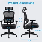 Specification Product Name: Ergonomic Office Chair Color: Black Back Style: High Back Material: Mesh, PU, Sponge, Nylon, Metal Foot Material: Nylon Seat Dimension: 20.5"(L)x20.1"(D) Backrest Dimension: 18.5"(L)x28.4"(H) Tilt Function: 90°-135° Adjustable Seat Height: 16.8"-20" Weight Capacity: 500 lbs Product Dimensions: 28.2" x 26" x 43.9-47.1" Product Weight (lbs.): 32.6 Pounds Package Size: 27.5" x13.7"x 22" Distance from the Seat to the Ground: 16.8"-20" Distance from the Handrest to the Ground: 22.5"*25.2" Distance from the Handrest to the Cushion: 5.5"-8.4" Package Included 1x High Back Office Chair 1x Assembly Tools 1x Assembly Instruction Comfort Series Ergonomic Chair transcends furniture; it's a statement. Redefine your workspace with a perfect blend of comfort and style. As you settle into its embrace, you'll find yourself experiencing a new standard of ergonomic luxury. invites you to elevate your workspace—where comfort meets style, and every moment at your desk becomes a moment of sheer ergonomic bliss. Ergonomic Design: ergonomically designed office chair with lumbar pillow provides solid support. The curved lumbar support of this comfortable office chair ensures a snug fit without suspending the spine, stay energized with our ergonomic mesh office chair. Unrivaled Comfortable PU Seat: Combine style and comfort with a sleek, sag-resistant design, this home office desk chair with headrest features a large cushion built with high-quality natural foam, encased in PU, and adjustable headrest for a balanced work and leisure experience. Seat dimension: 20.5" W x 20.1" D x 4.7" H. Multi-position Adjustable: Reclining office chair headrest adjusts forward/backward by 3 cm, rotates 45 degrees, and has 5 cm height adjustment. Adjustable 7cm height armrests relax shoulders, support elbows, this comfy office chair boost work efficiency. Our office computer desk chair can recline up to 135° for a comfy break. High-Quality Material: This office chair for heavy people is built with three-stage pneumatic rod, passing 120,000 lift tests for safety. Sturdy steel base ensures smooth control. High-load-bearing nylon base is stable, durable, and stays clean. The high back desk chair soft PU covering, silent anti-slip wheels preserve floor integrity. As for Assembly: comfort executive office chair are integrally molded, simplifying assembly for a secure fit just in minutes. Chair dimensions: 28" (L) x 25.6" (W) x 43.9-46.9" (H). Package dimensions: 27.6" (L) x 13.8" (W) x 22" (H). Max weight capacity: 400 pounds.