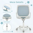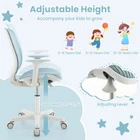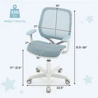Swivel Mesh Children Computer Upholstered Seat Adjustable Height Ergonomic Chair ● Height Adjustable Function: With the premium gas lift and adjusting lever, the kids task chair will smoothly lift up and down from 31.5" to 36". Thus, kids can sit with the most comfortable position. Adjustable height satisfies the needs of kids from 6 to 15 years old. ● Ergonomic Backrest and Armrests: Ergonomic curved backrest with back support fits well with kid's body curve, which is good for spine protection and fatigue relief. Meanwhile, the smooth armrests offer extra support for your hands to ensure further relaxation. ● Swivel Seat and Sit-Brake Wheels: The seat can swivel 360°, enabling kids to change directions for easy reach. 5 sit-brake wheels will auto-lock when the gravity is more than 55 lbs and auto-loose when kids get up. To ensure safety, kids can not move the chair when the wheels are locked. And the PU wheels won't damage the floor. ● Upholstered Nylon Mesh Chair: Upgraded nylon mesh fabric offers strong tension and long service life. The elastic and skin-friendly mesh seat guarantees kids' sitting comfort. Additionally, premium PP support base of the seat ensures sturdiness and durability, allowing the chair to accompany your kids to grow for years. ● Simple Assembly and Versatile Use: Detailed user manual and all needed accessories make it easy to assemble the desk chair. The chair dimension is 22.5" x 22.5" x 31.5"-36" (L x W x H). Once assembled, it can be widely used in the dorm, kid's bedroom or study room. Color: Blue Material: Nylon Mesh, Sponge, PP Overall Dimension: 22.5" x 22.5" x 31.5"-36" (L x W x H) Seat Height: 17"-21.5" Seat Dimension: 17" x 15"(W x D) Backrest Dimension: 17" x 15"(W x H) Diameter of the Base(With Wheels): 22.5" Diameter of the Base(Without Wheels): 19.5" Applicable Age: 6-15 Years Old Weight Capacity: 330 lbs Net Weight: 14.5 lbs