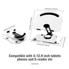 Return Policy Fast Delivery Trusted seller Swivel Tablet Stand with 360 Rotating Base,3-Axis Foldable Transparent Tablet Holder for Desk Home Office, Compatible with iPad Mini, New iPad, iPad Pro, Samsung, iPhone and More. Product Description 360 degree rotation height adjustable: This tablet stand can rotate horizontally 360 degrees, and every rotation will make a ing sound. It is completely foldable and can be easily adjusted to the desired position, freeing hands. This is a great desktop accessory that allows you to watch videos, play games, make phone calls, view recipes, and activate smart lifestyles using Facetime and more. Stability/Protection: This tablet stand is made of high-quality Acrylic, The base design allows the tablet to receive strong support even when rotating 360 degrees on a flat surface, with a stable center of gravity and no need to worry about any shaking. Rubber pads can protect your tablet from any scratches and sliding. Compatibility of protective case: The hook of the tablet stand adopts a flat design, and t is a silicone anti slip pad at the bottom, so t is no need to remove the protective case. It is long enough to secure your device to this tablet stand. Please ensure that the thickness of your device does not exceed 20 millimeters (0.79 inches). Universal compatibility: Perfect support for tablets/iPads (up to 15 inches): such as iPad Pro 12.9 inches/11 inches, iPad Air 1/2/3, iPad 2018, iPad mini 1-4, Samsung Galaxy Tab, Microsoft Surface tablets: Surface Pro X/Pro 7/Pro 6/Pro 4/Pro 3/Surface Go, Kindle Fire HD, Steam Deck, small laptops, etc. Broad Application: Adjust the ipad swivel stand Desktop for customized angles, ensuring comfortable conference calls, meetings, movie watching, or gaming. It’s a good work partner if you use iPad as an extended screen. Also, the tablet dock can be suitable for cooking, meetings, studying and etc. Shipping Returns Payment Shipping Shipping is FREE to all addresses other than APO/PO boxes in the lower 48 states. All our stock ships from US-based warehouses. Shipped via USPS or UPS (depending on location and package weight) Unless stated otherwise, all orders will ship within 24-72 hours of your payment being processed. Check our feedback to see the great reviews of FAST shipping we offer. Returns Seller does not accept returns Payment We currently accept payment via eBay managed payments only. Once payment is cleared, we will dispatch your shipment within 1-3 business days. Please refer to the "Shipping" tab for more information regarding shipping speed to your destination.